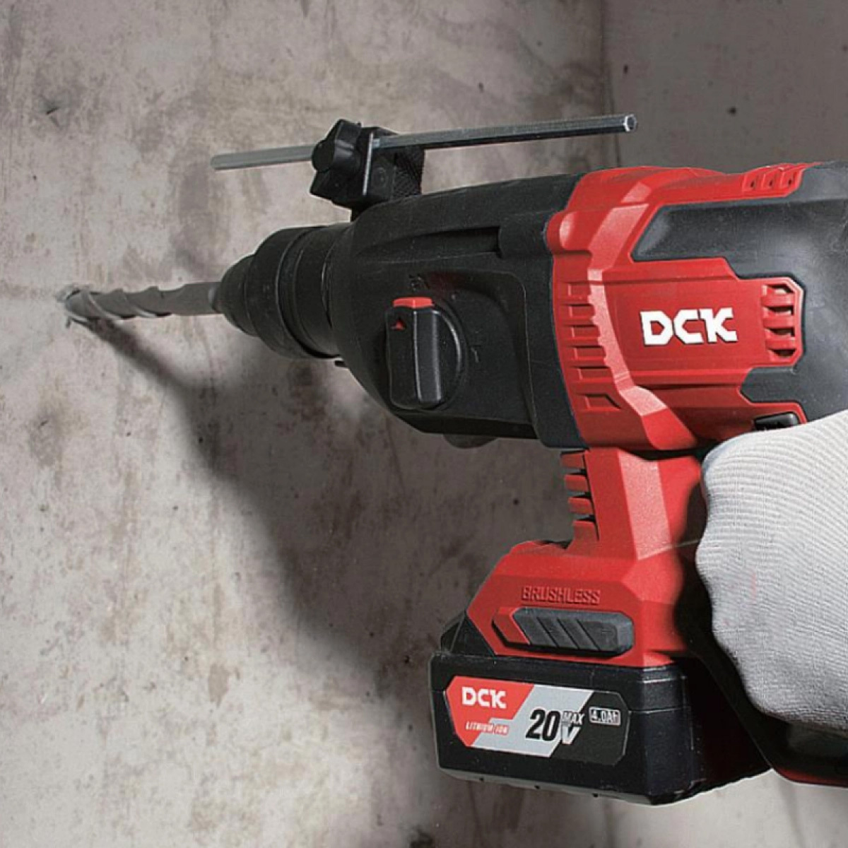 Аккумуляторный бесщеточный перфоратор DCK KDZC04-24 — имеет горизонтальное расположение двигателя. Может работать в 3 режимах: сверление, сверление с ударом, отбойный молоток. Механическая муфта и электронная защита от поворачивания обеспечивает максимальную безопасность при работе.